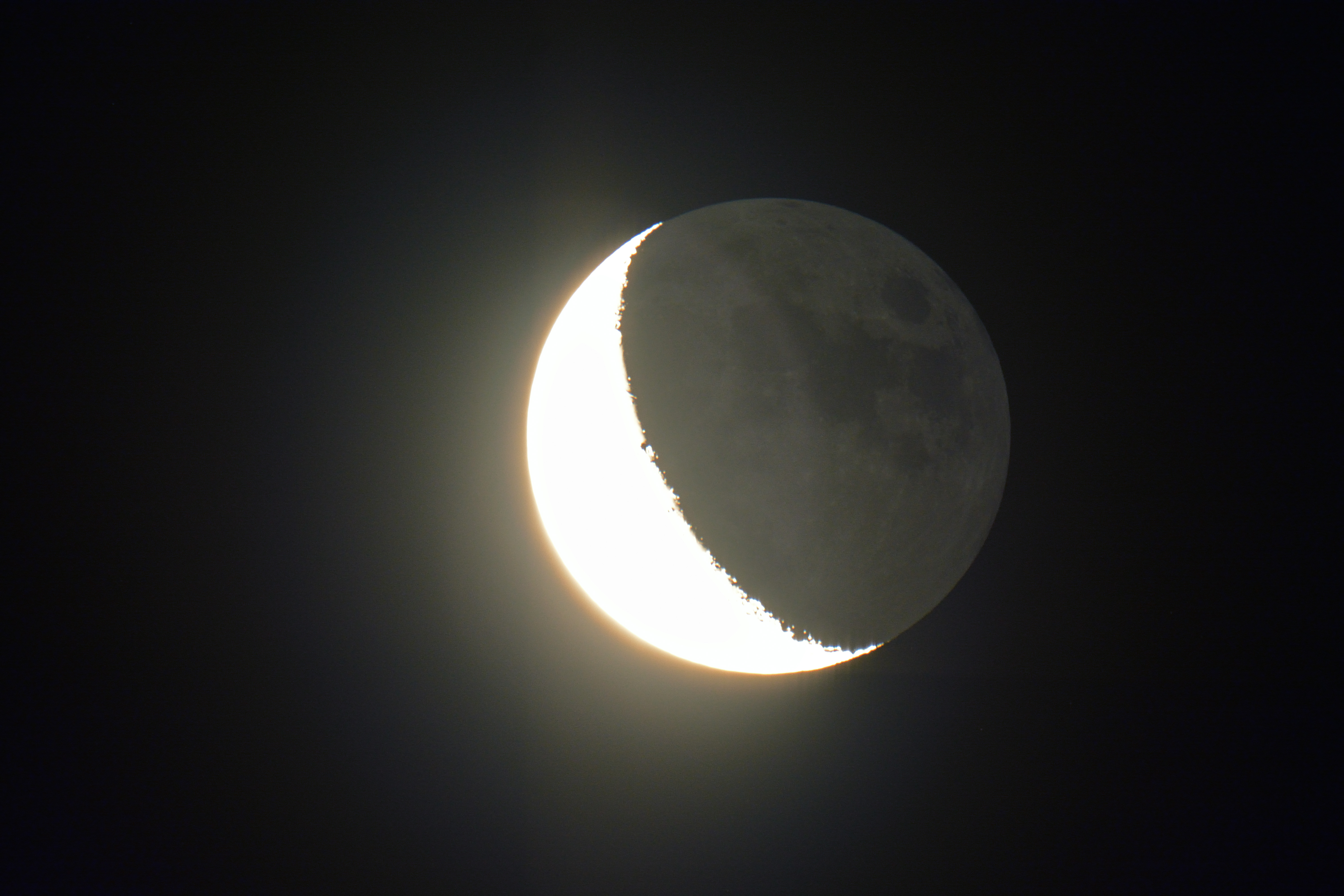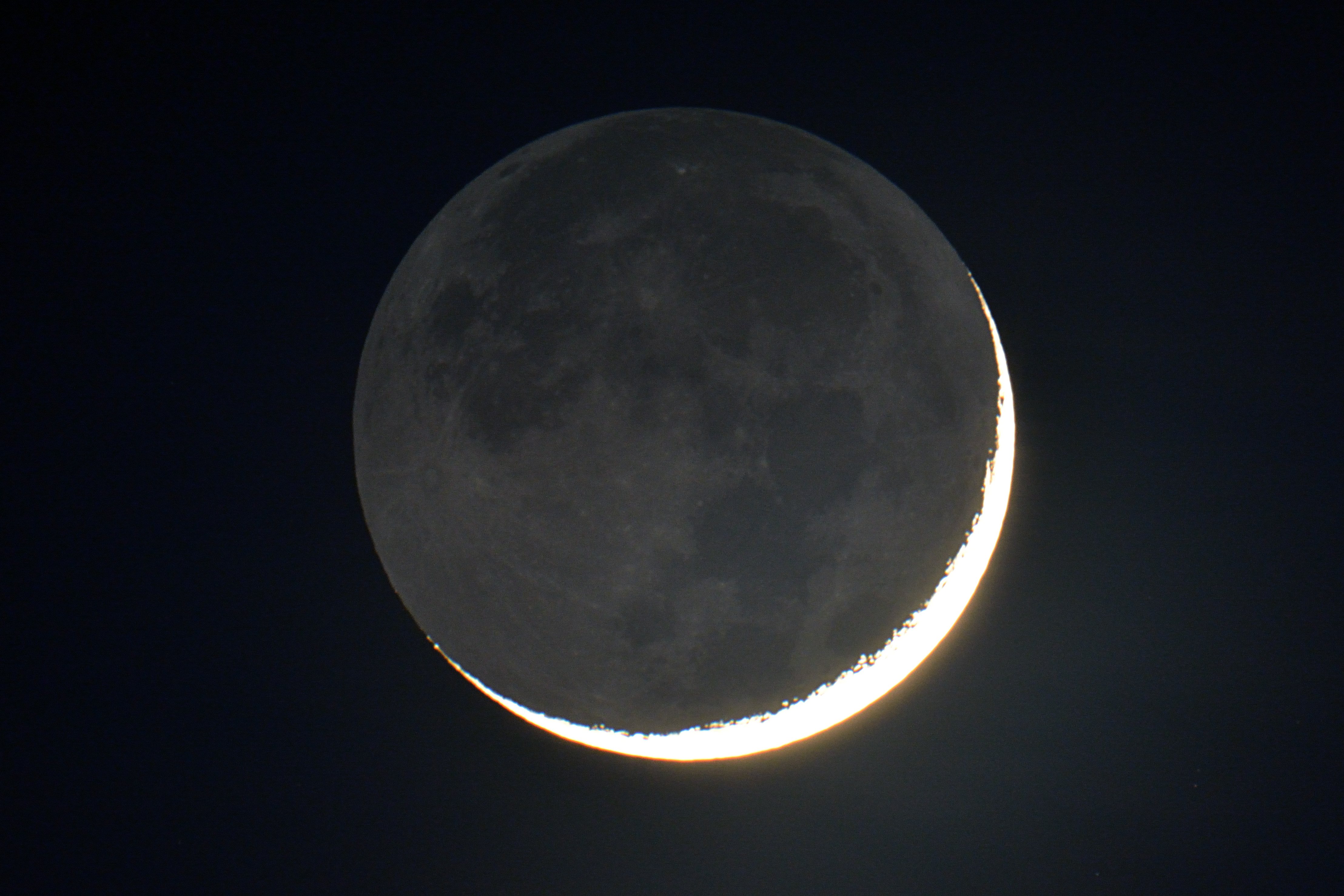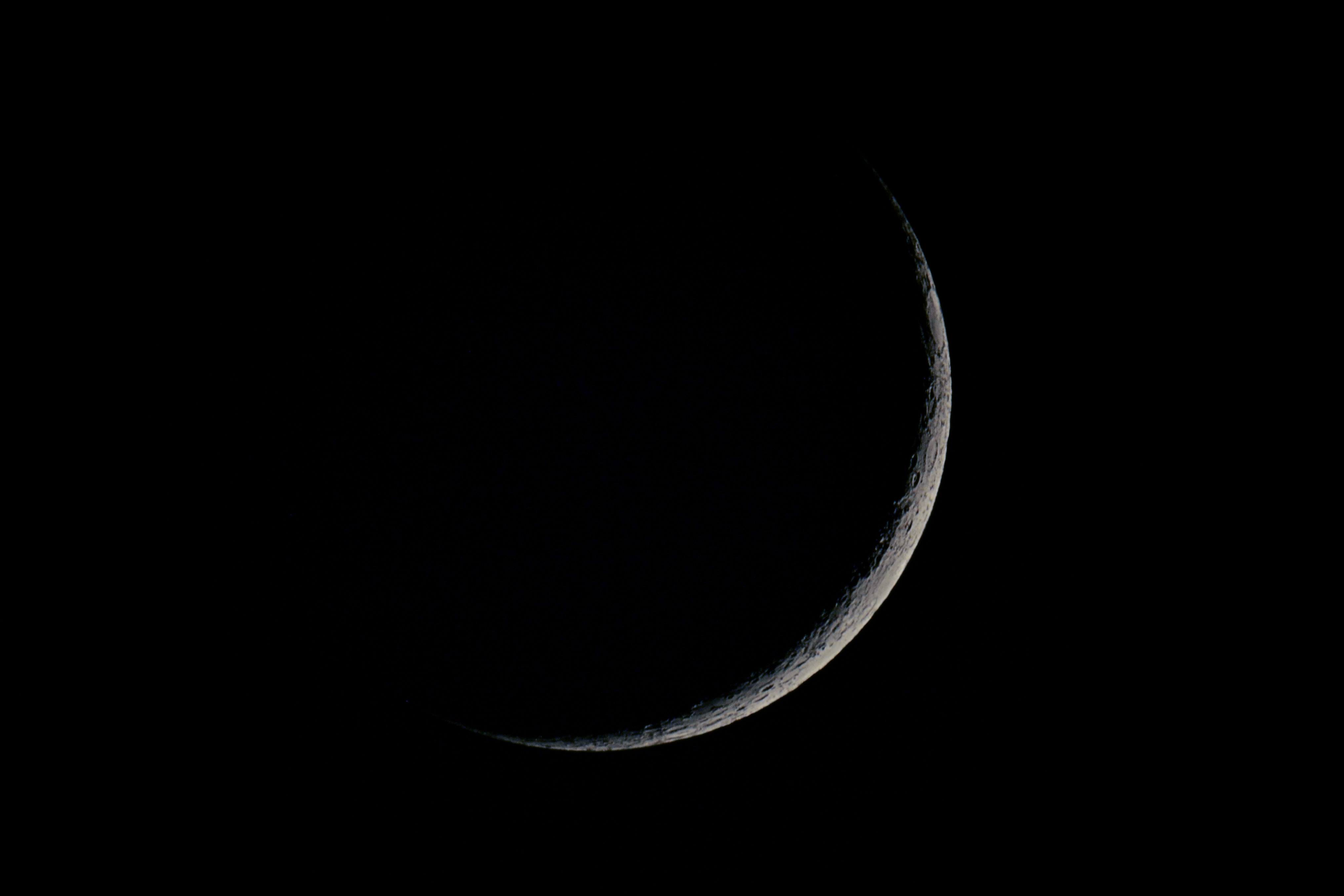 Mondsichel am 27.08.2016 um 2:43 Uhr MESZ Skywatcher N 200/1000, HEQ-5 Pro, Komakorrektor, Fokalprojektion, Nikon D5200, ISO100, 1/30s |