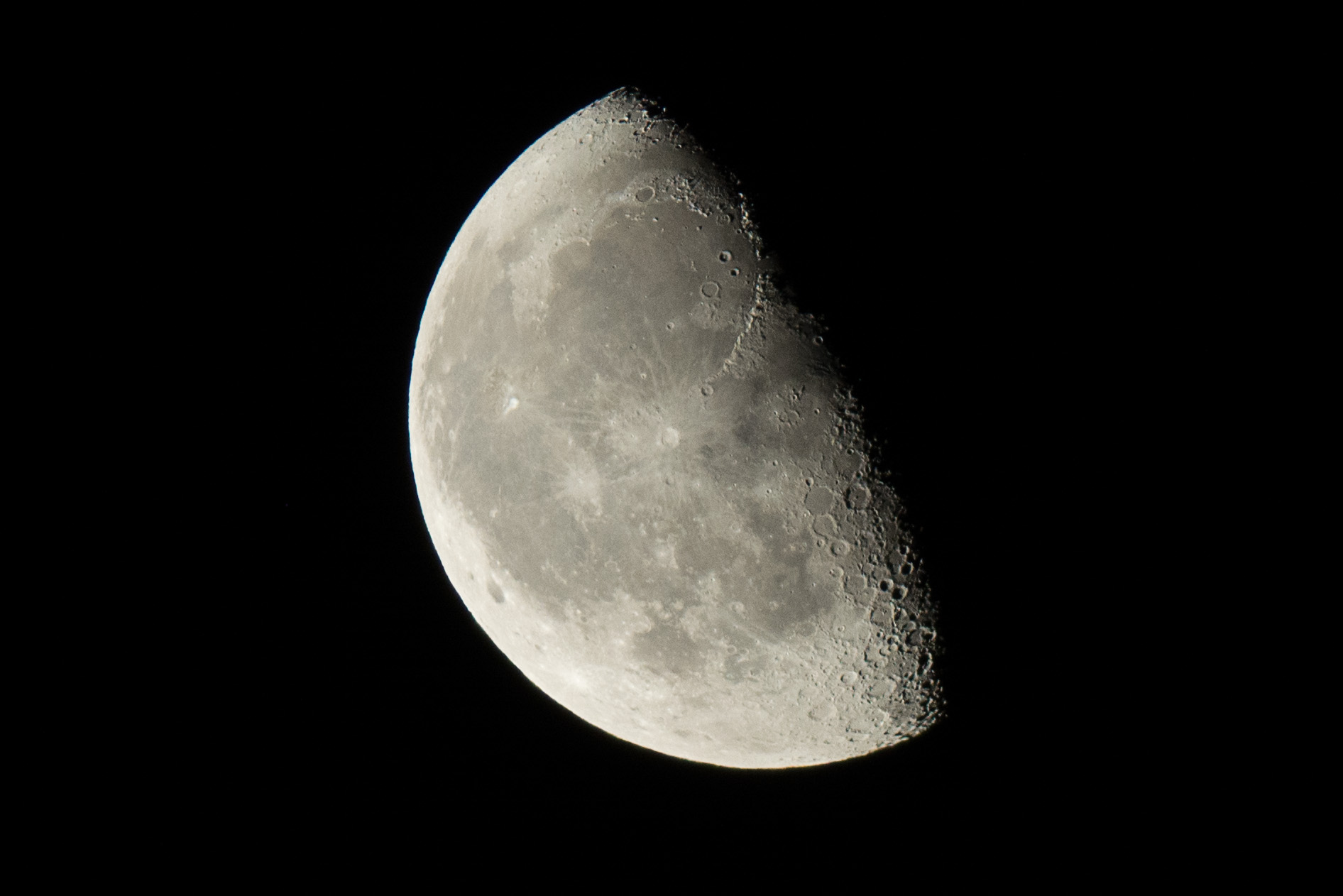Mond 1. Viertel am 25.03.2018 um 2:26 Uhr Skywatcher N 200/1000, HEQ-5 Pro, Komakorrektor, Fokalprojektion, Nikon D5200, 1/50s, ISO100 |