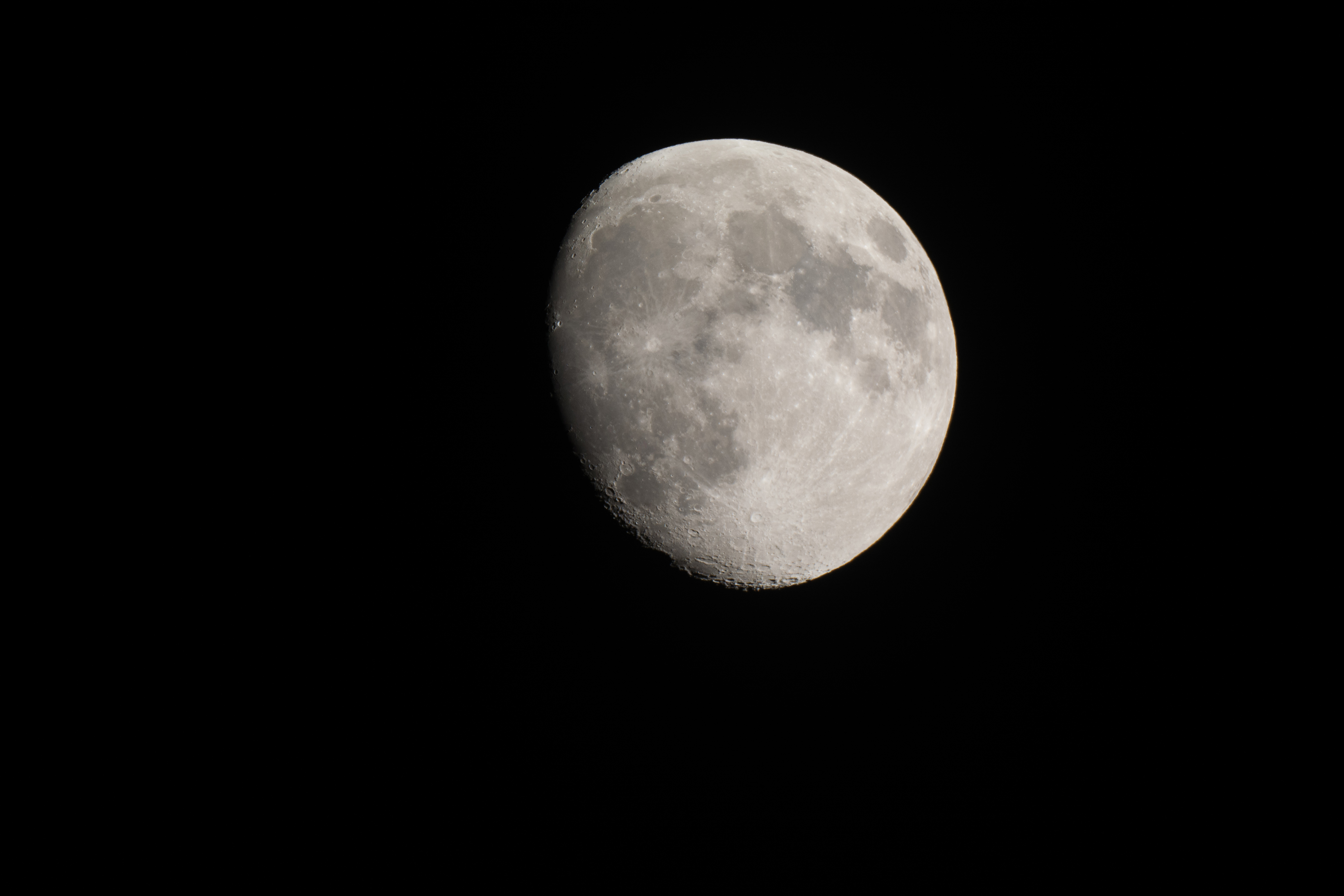 Zunehmender Mond (88%) am 02.09.2017 um 23:40 Uhr Skywatcher N 200/1000, HEQ-5 Pro, Komakorrektor, Okularprojektion, Nikon D5200, ISO800, 1/100s |
